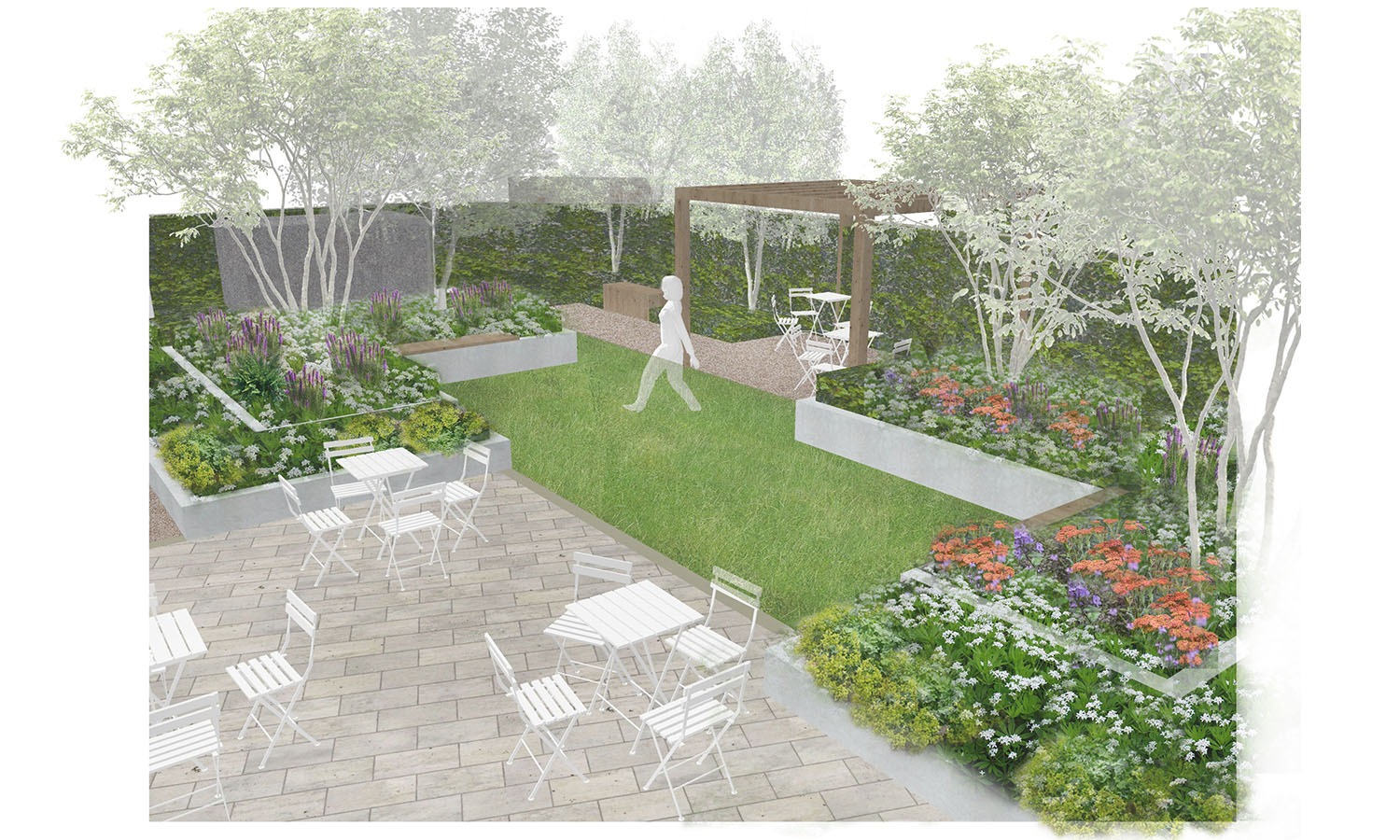 The main social and active space for the site needs to be a hardworking space, combining flexibility, with sensory planting, a growing space. All the spaces were designed to be inclusive and flexible to meet the needs of a variety of physical and mental health conditions.
