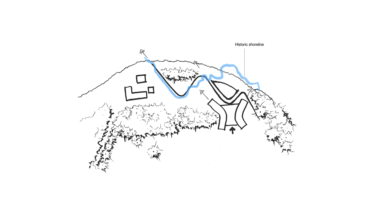 The Hunter Global Leadership Centre buildings were designed to be “buildings of the landscape”, in that they are part of the lochside landscape. The landscape concept was inspired by the form of the historic shoreline, as a means of providing a structure and connecting the landscape and proposed buildings. It frames the views with tree lines and water features enhancing the idea of the new being seamlessly woven into the existing natural landscape.