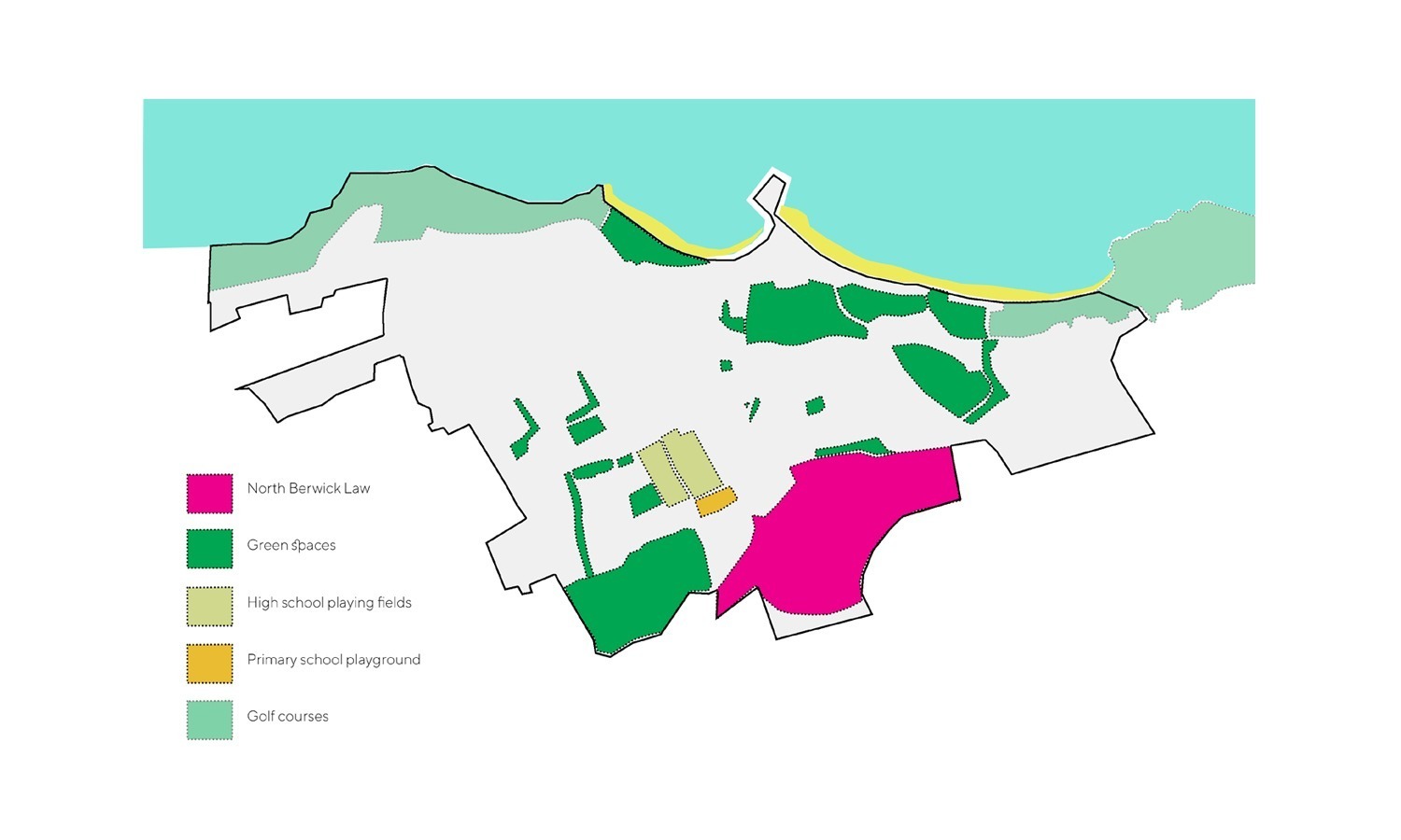 The Triangle space is located at a key point at the entrance to the town, at the foot of the Law, with views out across the town to the sea and Bass Rock beyond. The aim was to create a landscape that responds to its setting, and also acts as a meeting point for the school and the community.