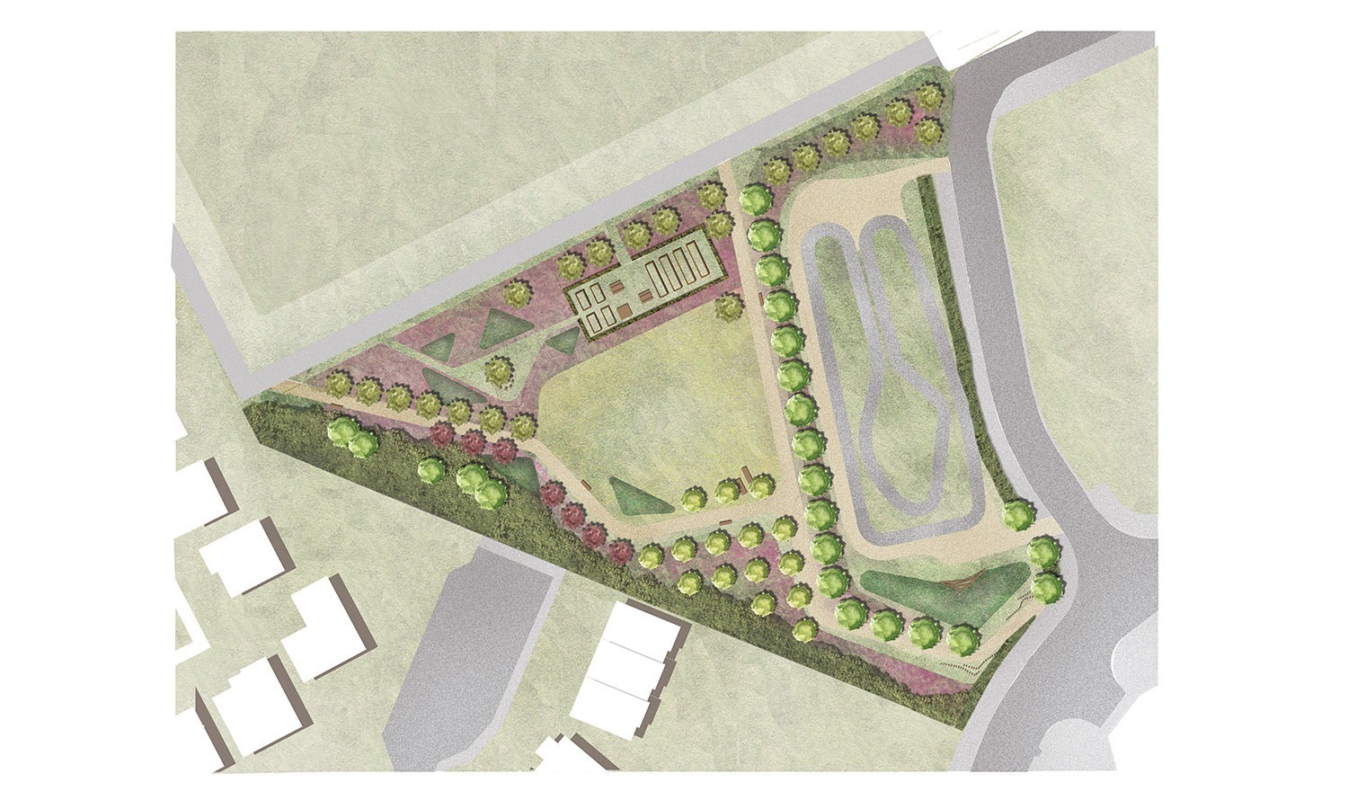 The space is proposed as a rich and biodiverse landscape with a series of open spaces, in different scales to accommodate groups/gatherings of different sizes, both informal and formal. The proposed paths, meadows, and belts of trees in sweeping forms are inspired by both the sea and the local landscape.